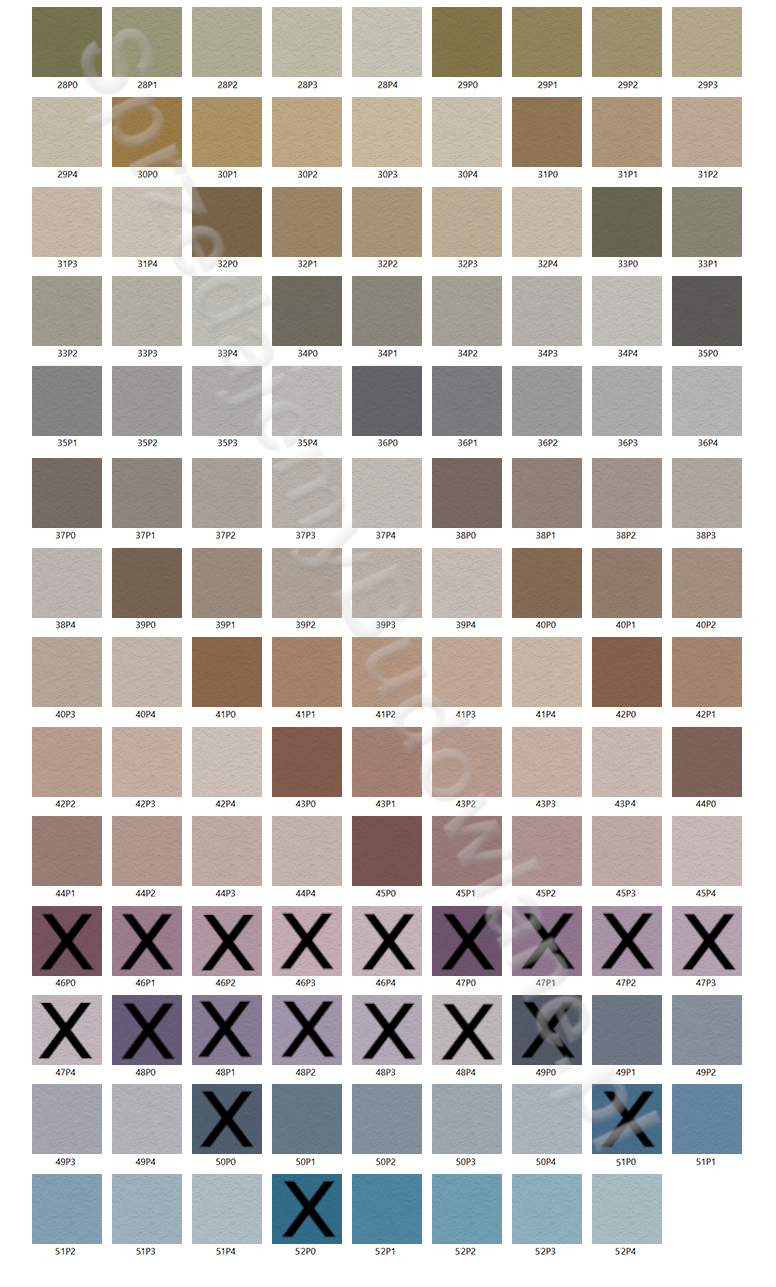 Poniżej prezentujemy paletę dostępnych kolorów tynków i farb.