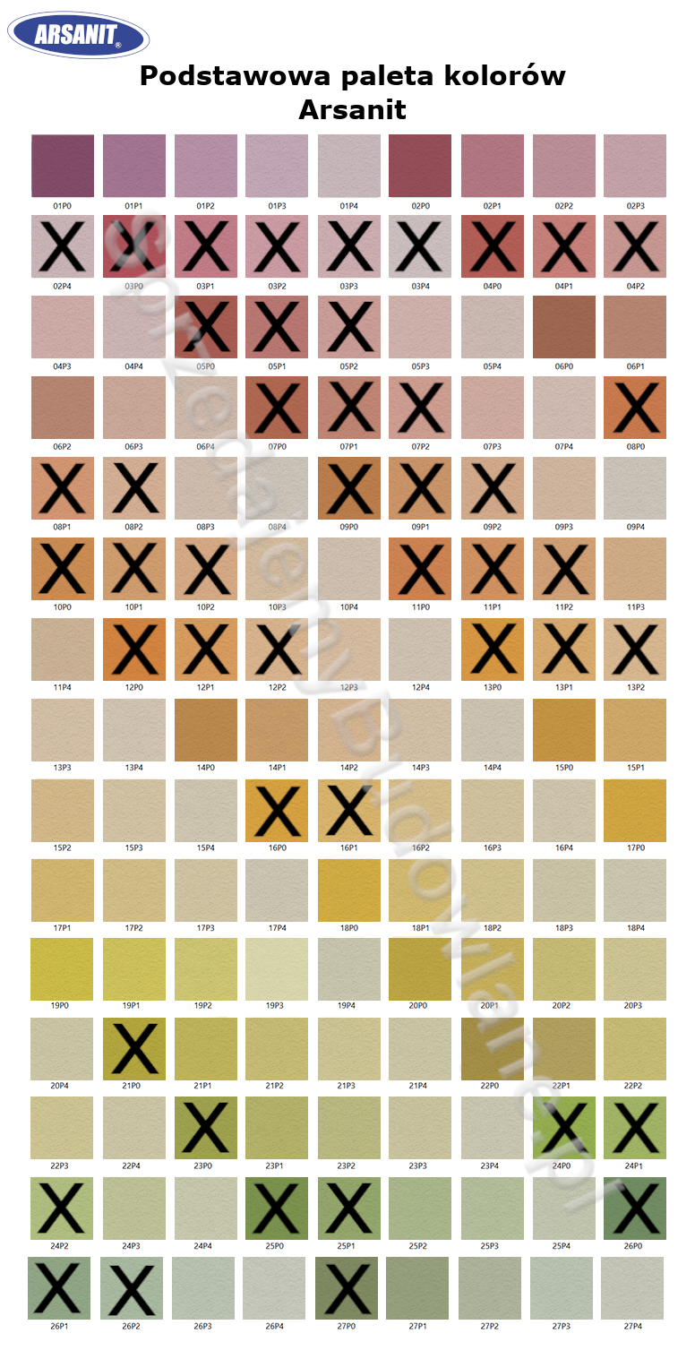 Poniżej prezentujemy paletę dostępnych kolorów tynków i farb.