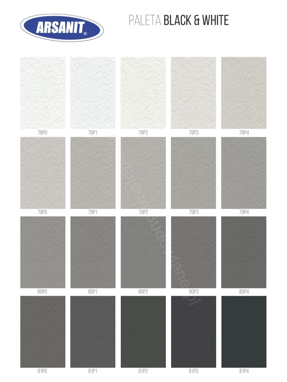 UWAGA: Prezentowane barwy należy traktować jedynie poglądowo, gdyż na ocenę koloru wpływ mają np. ustawienia monitora (wyświetlacza), oświetlenie zewnętrzne – dlatego sugerujemy, by ostatecznego wyboru dokonać korzystając ze wzornika lub tablicy, które prezentują rzeczywiste próbki koloru.