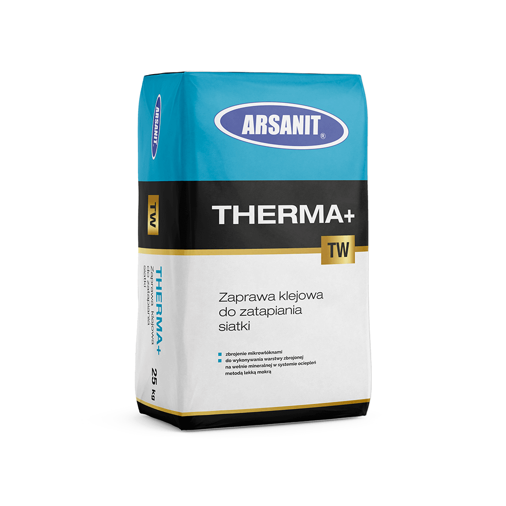 THERMA+ TW to zaprawa klejowa stosowana w systemie ociepleń Arsanit Therma+ W do wykonywania warstwy zbrojonej. Produkt można wykorzystać do szpachlowania oraz uzupełniania niewielkich ubytków.