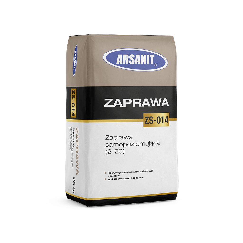 ZAPRAWA ZS-014 to samopoziomująca masa do wykonywania cienkich (grubość: 2 – 20 mm), wyrównująco – wygładzających podkładów podłogowych wewnątrz obiektów budownictwa ogólnego i mieszkalnego. Może być stosowana na podłożach: betonowych, anhydrytowych. Nadaje się pod wykładziny podłogowe z PCV, dywanowe, parkiet, terakotę, gres, kamień i panele podłogowe, również w konstrukcjach podłóg ogrzewanych.