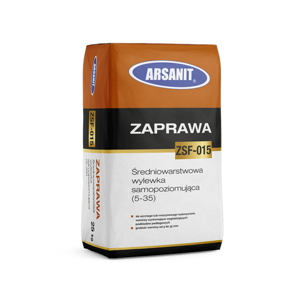 ZAPRAWA ZSF-015 to samopoziomująca, szybkoschnąca masa do wykonywania cienkich (grubość: 5 – 35 mm), wyrównująco-wygładzających podkładów podłogowych wewnątrz obiektów budownictwa ogólnego i mieszkalnego. Może być stosowana na podłożach: betonowych, anhydrytowych. Nadaje się pod wykładziny podłogowe z PCV, dywanowe, parkiet, terakotę, gres, kamień i panele podłogowe, również w konstrukcjach podłóg ogrzewanych.