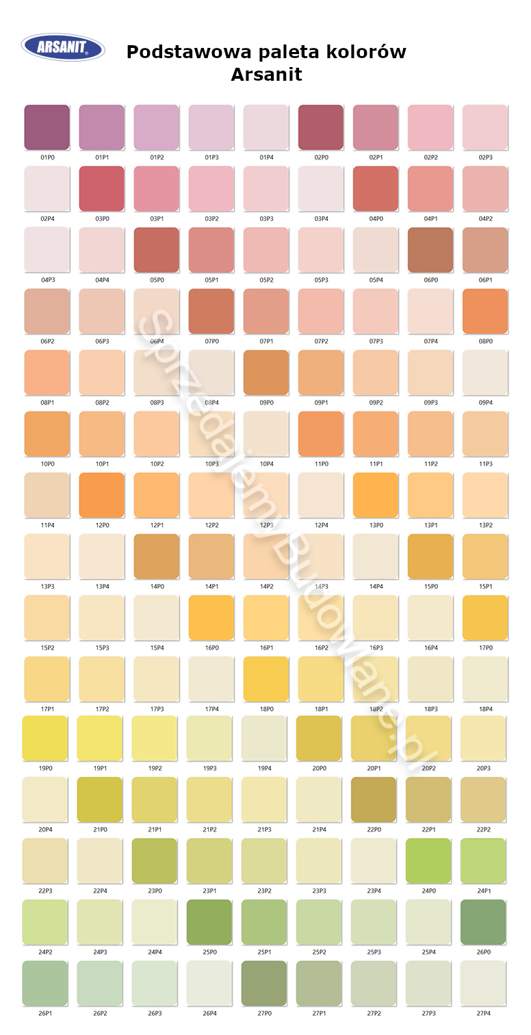 UWAGA: Prezentowane barwy należy traktować jedynie poglądowo, gdyż na ocenę koloru wpływ mają np. ustawienia monitora (wyświetlacza), oświetlenie zewnętrzne – dlatego sugerujemy, by ostatecznego wyboru dokonać korzystając ze wzornika lub tablicy, które prezentują rzeczywiste próbki koloru.