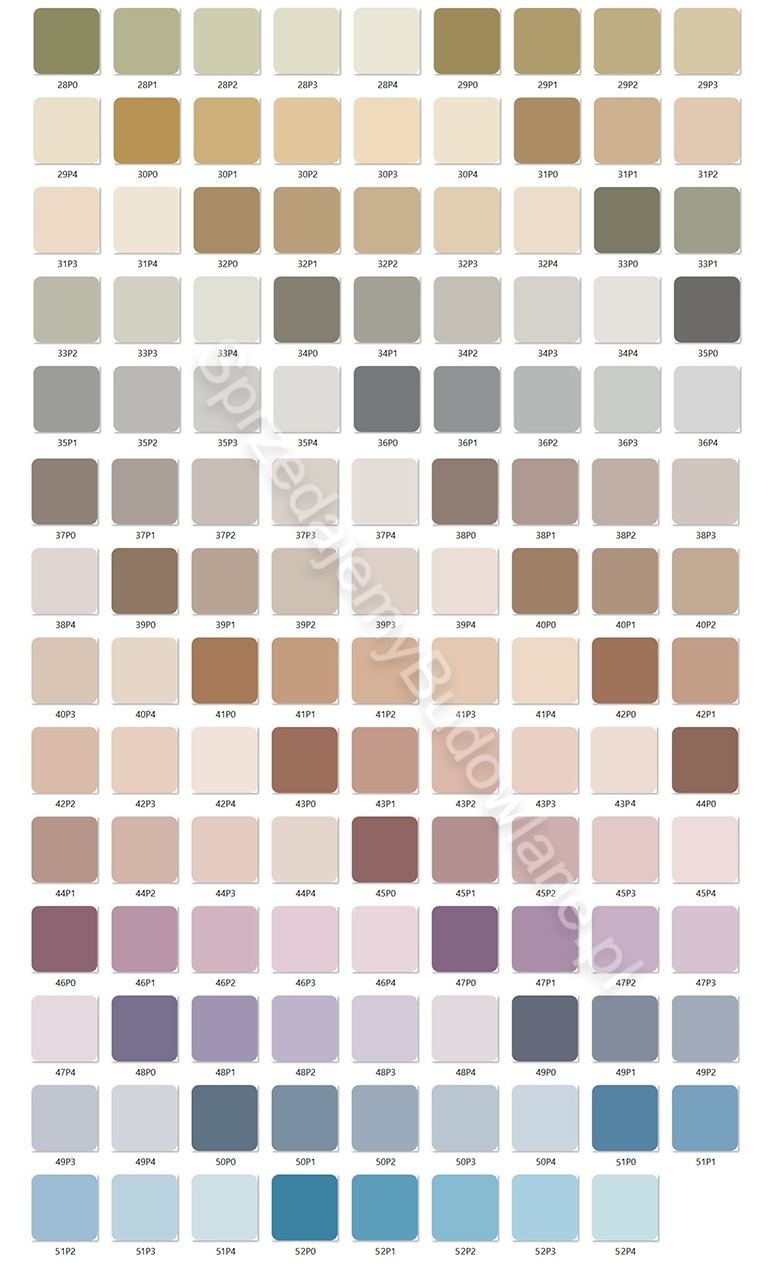 Poniżej prezentujemy dostępną kolorystykę podkładów tynkarskich.