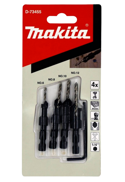 Zestaw 4 wierteł pogłębiaczy Makita D-73455