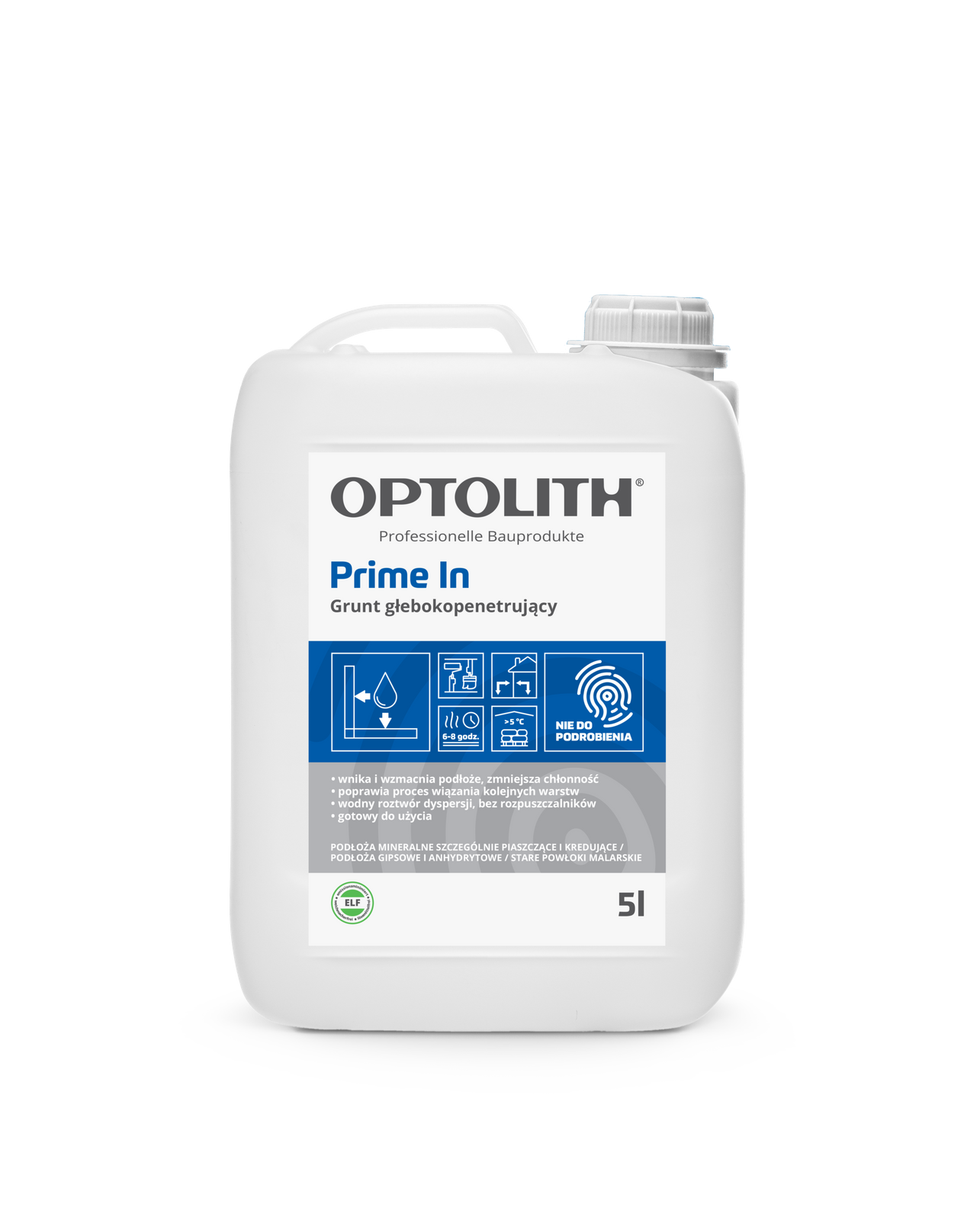 Prime In jest gruntem głęboko penetrującym. Zalecany na piaszczące i kredujące podłoża mineralne oraz posadzki anhydrytowe. Wnika i wzmacnia podłoże oraz zmniejsza jego chłonność, przez co optymalizuje proces wiązania układanych na nim: wylewek, tynków, gładzi, kleju. Służy również do gruntowania podłoży przed mocowaniem wykładzin podłogowych lub tapetowaniem.