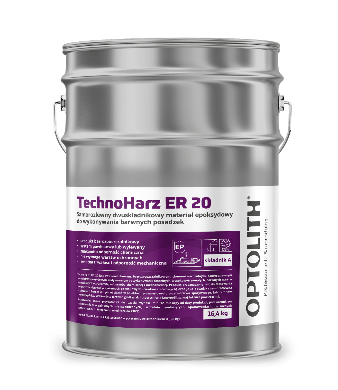 TechnoHarz ER 20 jest dwuskładnikowym, bezrozpuszczalnikowym, chemoutwardzalnym, samorozlewnym materiałem epoksydowym, dedykowanym do wykonywania szczelnych, wysokowytrzymałych, barwnych warstw posadzkowych o znakomitej odporności chemicznej i mechanicznej. Produkt przeznaczony jest do stosowania wewnątrz budynków w systemach powłokowych (cienkowarstwowych) oraz jako posadzka samorozlewna w obszarach bardzo dużych obciążeń w obiektach przemysłowych, przetwórstwa spożywczego, laboratoriów chemicznych itp. Możliwa jest zarówno gładka jak i uszorstniona (antypoślizgowa) faktura powierzchni.
